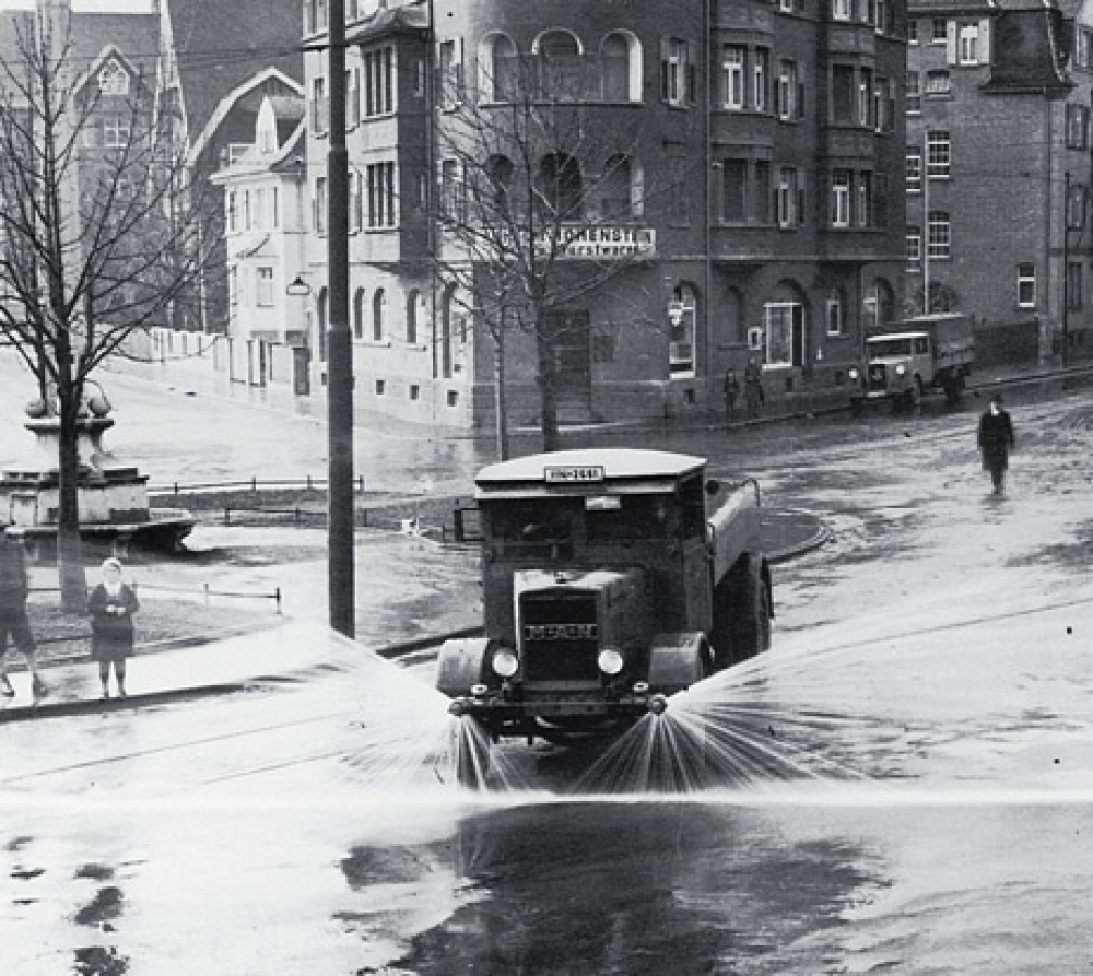 Der Franzose Pierre Outerquin entwickelte z.B. schon 1750 den ersten Straßensprengwagen.