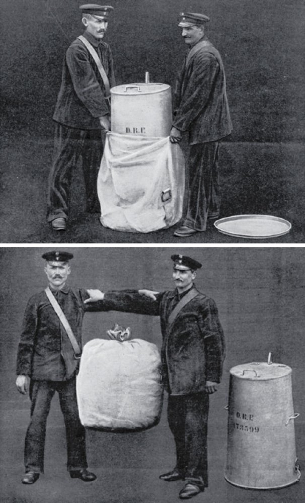 Aus anfangs "freier Behälterwahl" entwickelten sich genormte Müllgefäße, die zum Teil kaum verändert bis heute eingesetzt werden.