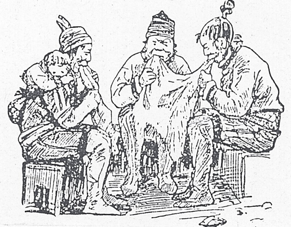 Häutekauende Eskimofrauen