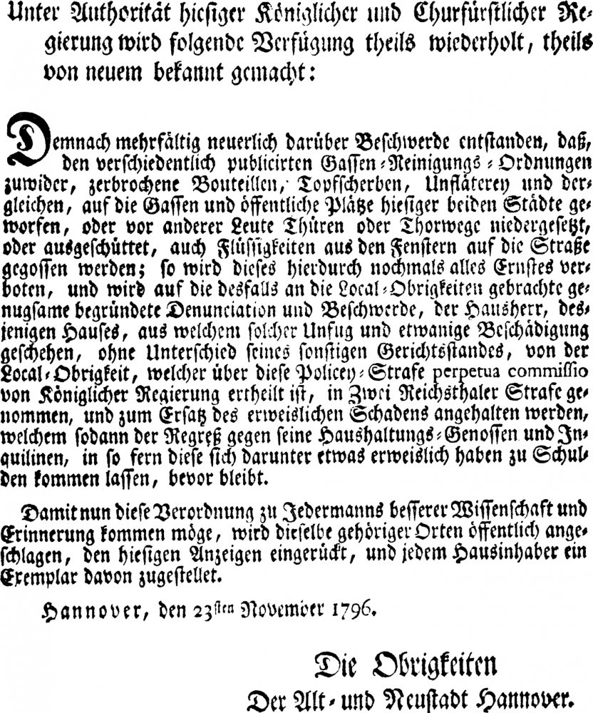 Gassen-Reinigungs-Ordnung - Hannover 1796