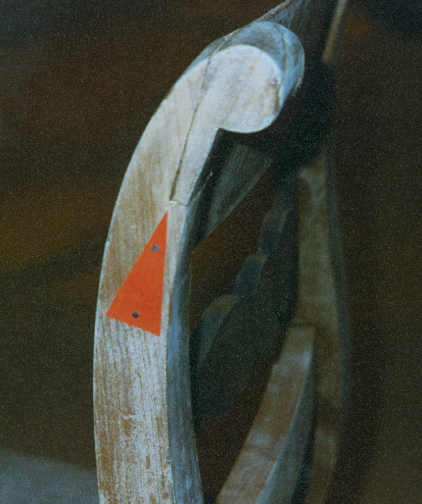 Die Lehne wurde vom Schreiner sorgfältig ergänzt, verleimt und mit Nägeln zusätzlich gesichert. Nach dem Ausgipsen der Fugen erhielt der Stuhl einen Anstrich mit