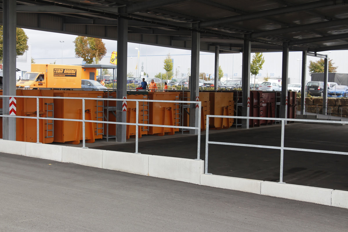 Wertstoffhof, Wertstoffcontainer, Abrollcontainer, ARC, Dach, Überdachung, Schutzgeländer