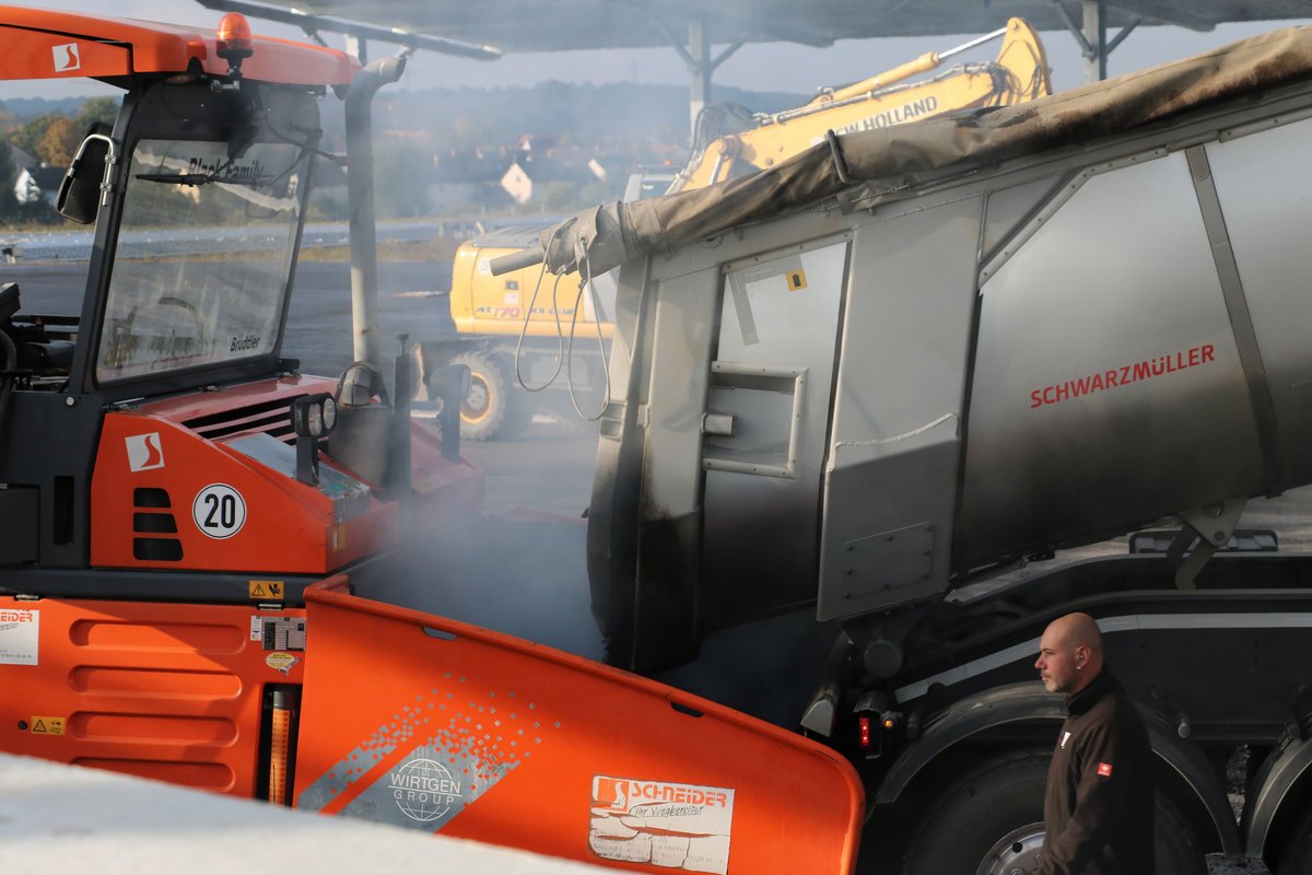 Wertstoffhof, Asphaltierung, Asphaltarbeiten, Asphaltmaschine, Asphaltfertiger, LKW, Kipper