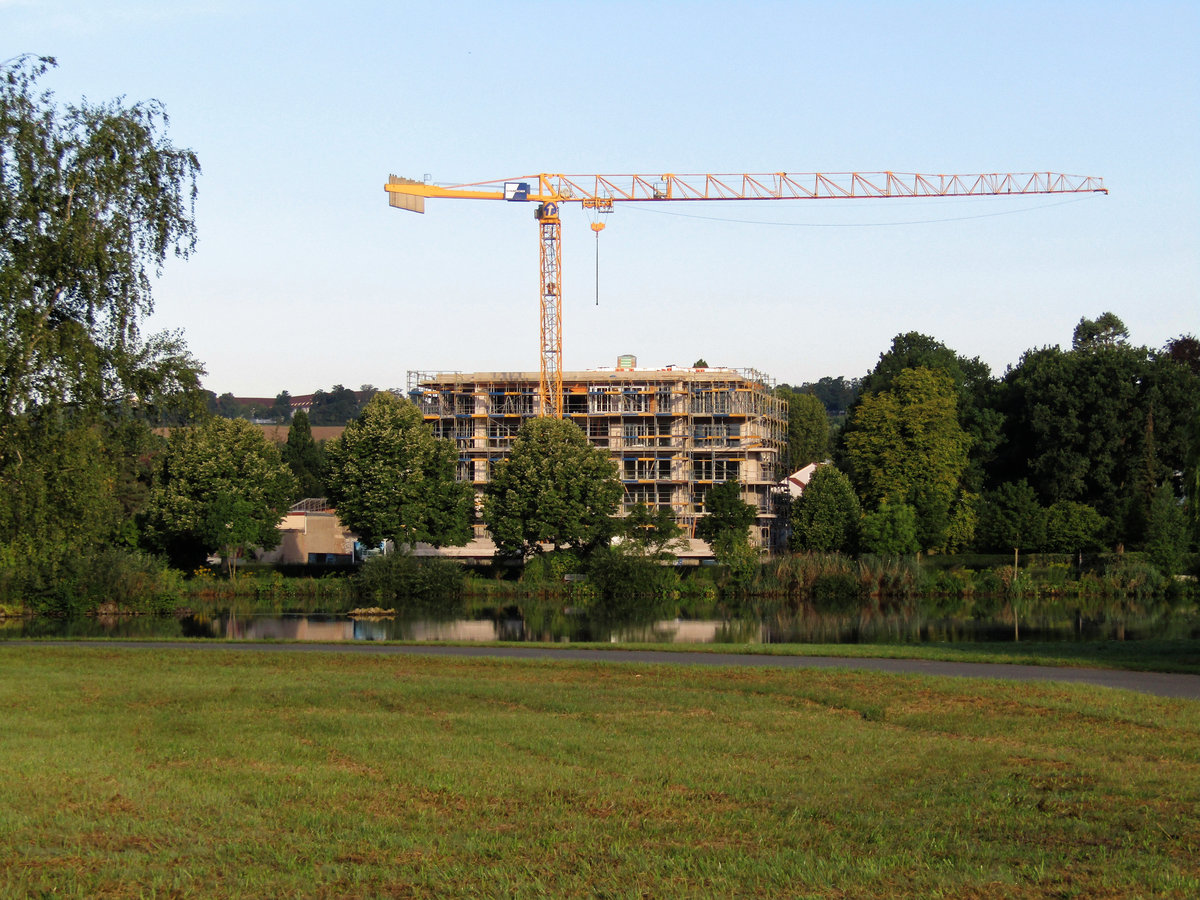 Baumaßnahme, Neubau, Rohbau, Hausbau, Baustelle, Kran, Gerüst