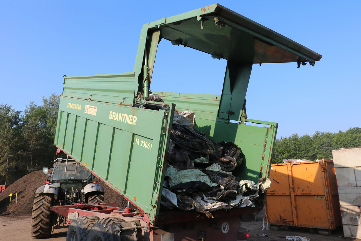 Kunststoffsammlung, Kunststofffolien, Silofolien, Plastikfolien, Agrarfolien, PE, PP, Abladen, Abkippen, Anhänger, Traktor