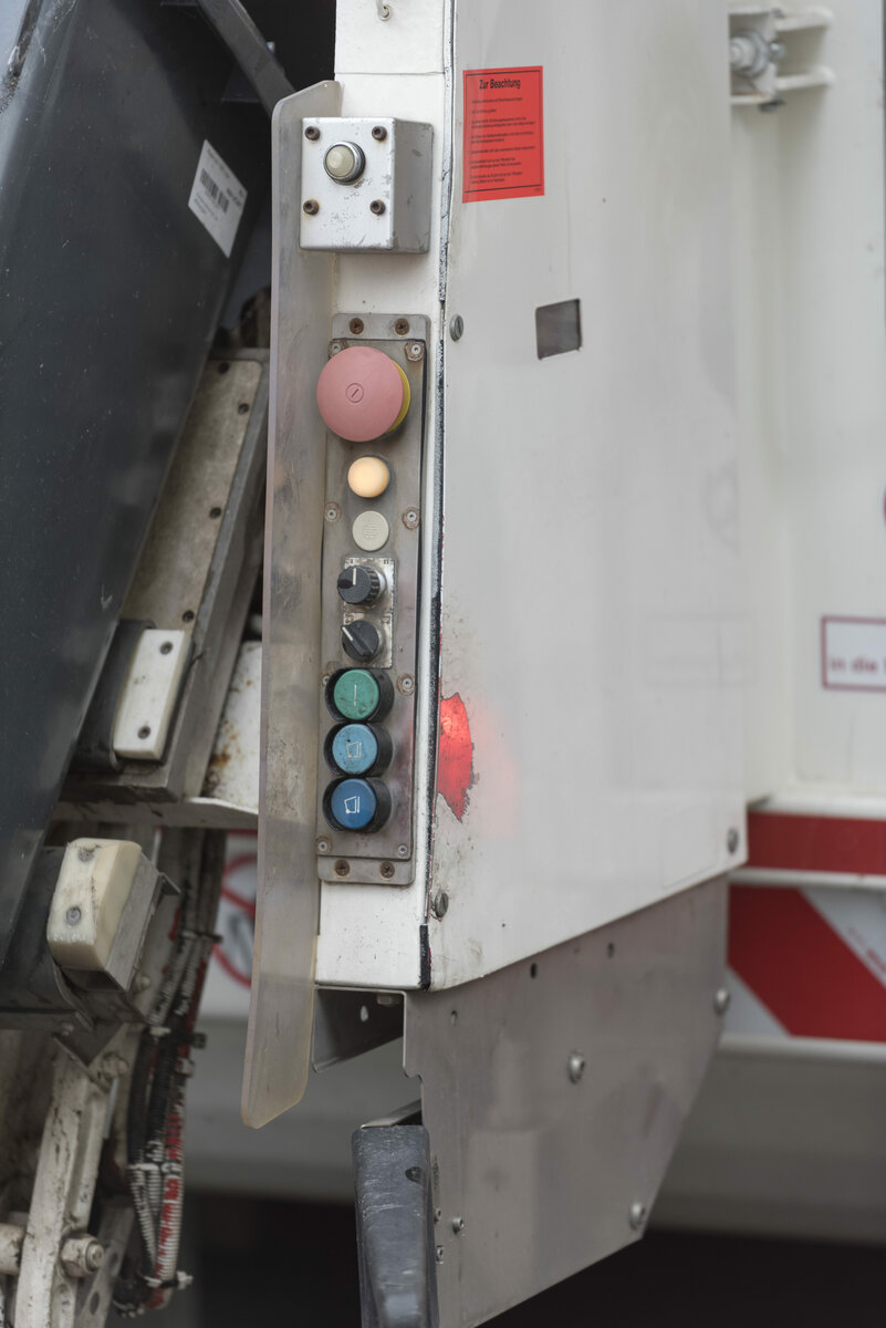 Müllfahrzeug, Hecklader, Schüttung, Bedieneinheit, Bedienfeld, Bedienknöpfe