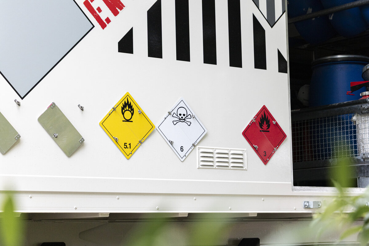 Mobile Problemabfallsammlung, Sondermüllsammlung, Schadstoffmobil, Sondermüllmobil, Giftmobil, Problemmüllmobil, Warnschilder, Hinweistafeln