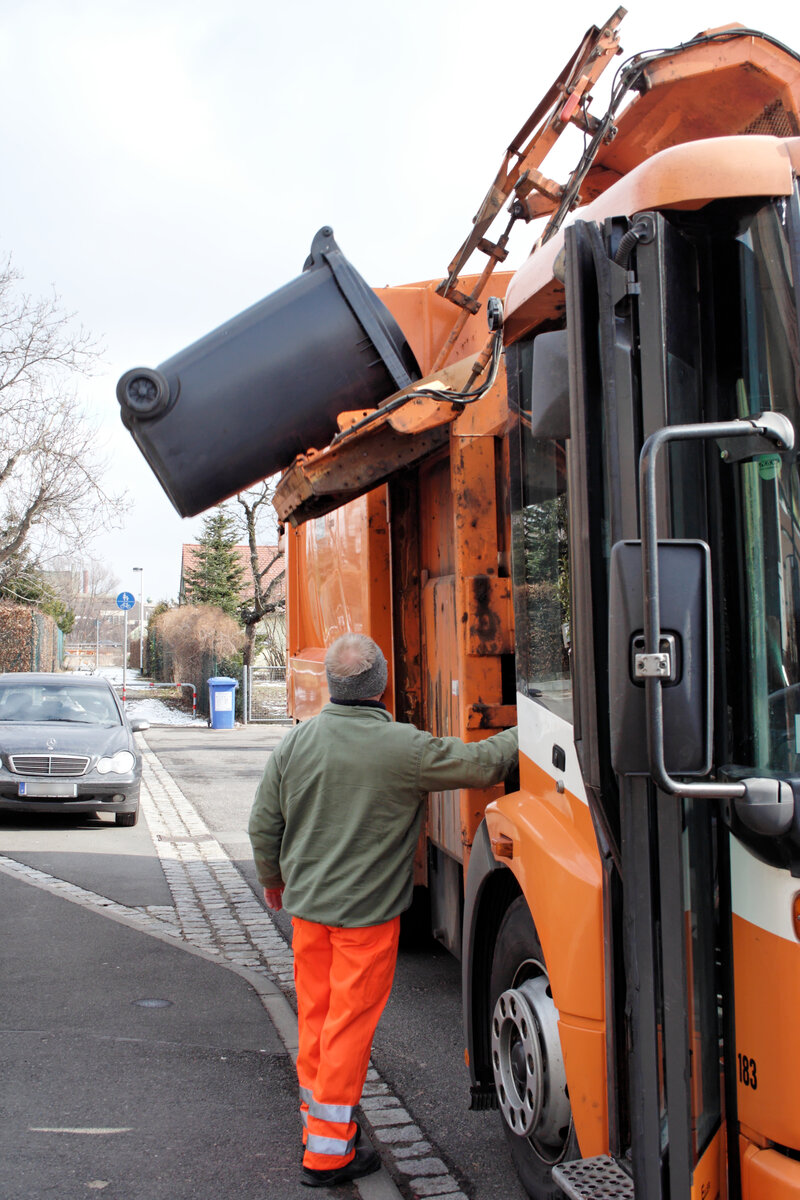 Restmüllabfuhr, Restabfallabfuhr, Müllabfuhr, Müllwerker, Müllfahrzeug, Seitenlader, Lifter, Leerung, Entleerung