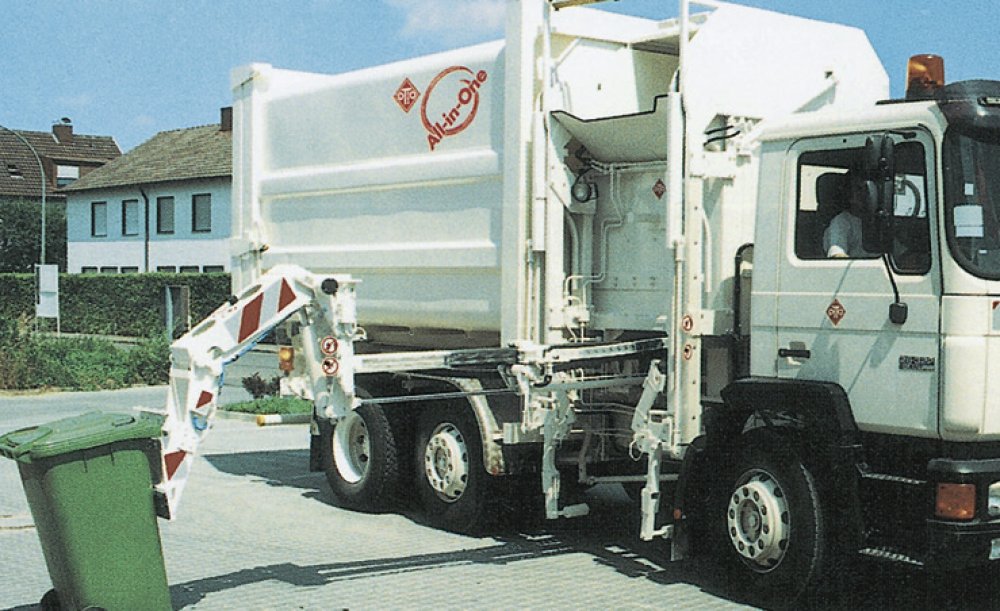 Auch ein anderer Trend, die personalsparende Seitenlader- technik, die seit 1999 flächendeckend im Landkreis Main-Spessart im Einsatz ist.
