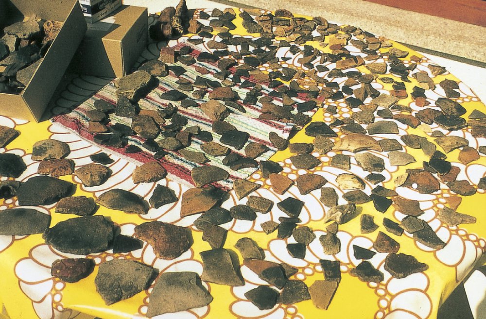 Andere wiederum, die ihre Häuser aus Holzpfosten, Weidengeflecht und Lehmbewurf auf dem Land errichteten, verfüllten die neben dem Haus liegenden Lehmgruben mit ihrem "Hausmüll", der hauptsächlich aus Knochen, Lederresten, Scherben und Essensresten bestand.
