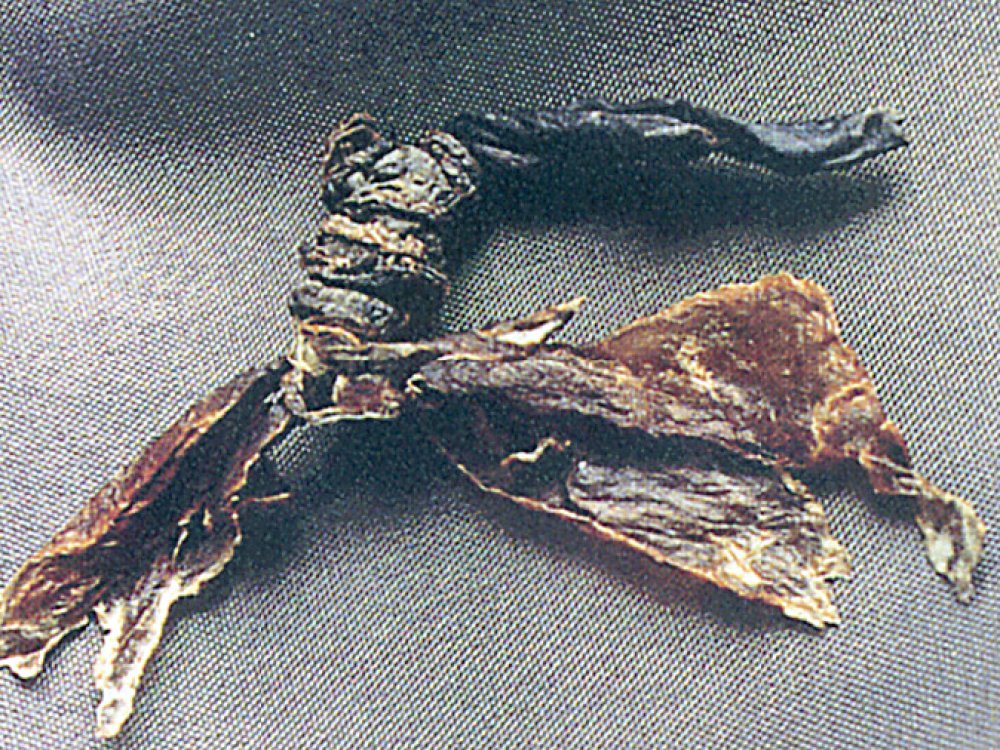 Wurstzipfel einer Hartwurst aus einer keltischen Abraumhalde unter Tage, am Dürrnberg bei Hallein