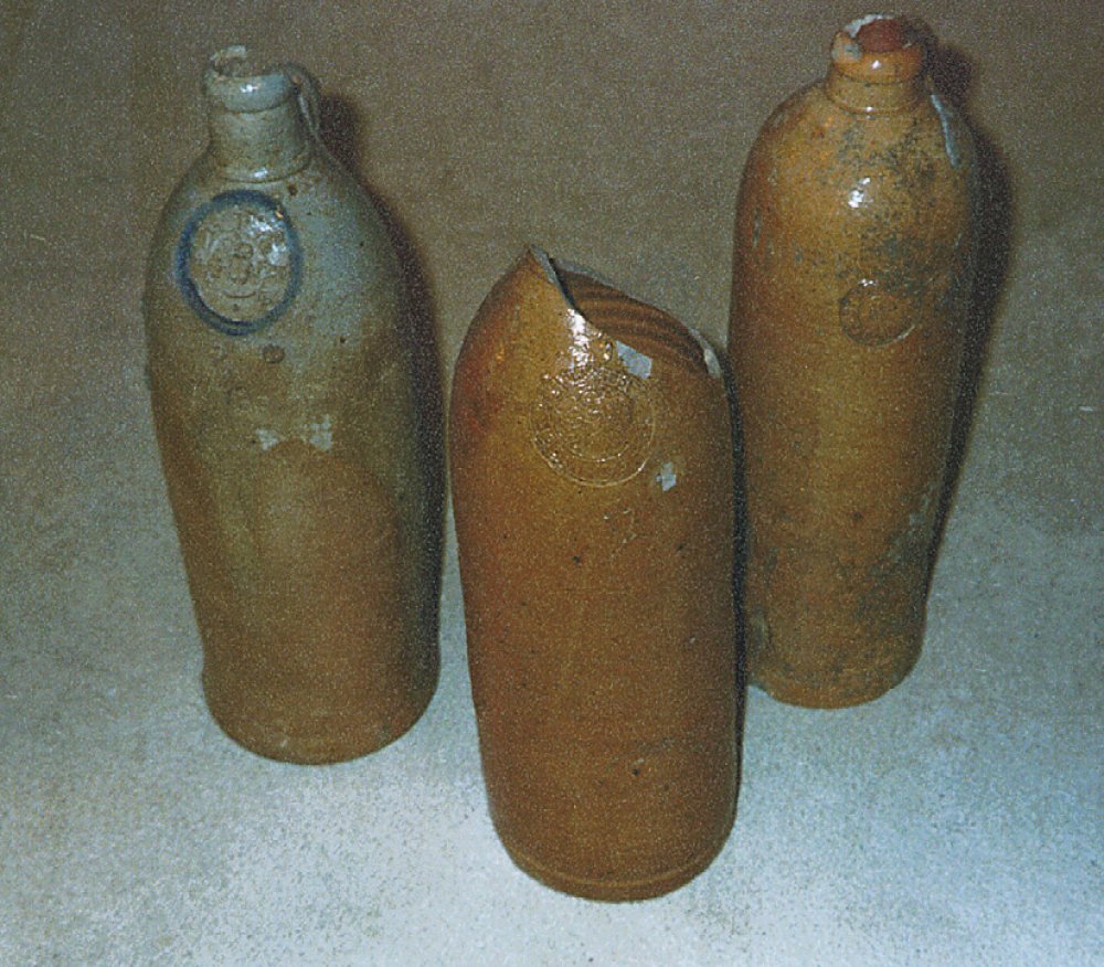 Mineralwasserflaschen aus Steinzeug wurden vor allem im 18. und 19. Jh. im Kannenbäckerland (Westerwald) in Millionenauflage hergestellt.