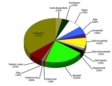 - Bioabfall: 20,53 Gewichtsprozent bzw. 24,81 kg pro Einwohner und Jahr