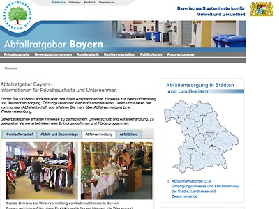 München. Seit kurzem präsentiert sich der «Abfallratgeber Bayern», das Wissensportal des Bayerischen Staatsministeriums für Umwelt und Gesundheit, in einem neuen Layout. Geändert wurde auch die Webadresse: der Abfallratgeber ist jetzt unter der Internetadresse www.abfallratgeber.bayern.de erreichbar.
