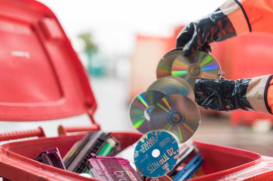 Landkreis Kitzingen. Fast 58.000 CDs, DVDs und Blu-ray Discs landeten 2023 in der roten Wertstofftonne, dazu noch jede Menge Tintenpatronen und anderes Druckerzubehör.