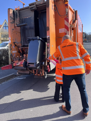 Ein besonderer Höhepunkt im Jubiläumsjahr waren drei Frühstücke, die unter langjährig teilnehmenden Gruppen verteilt wurden. Eines davon ging an den Kindergarten St. Bilhildis in Veitshöchheim. Die Kinder stärkten sich zunächst mit gesundem Vollkornbrot, Gemüsesticks und Obstspießen, bevor sie zur Müllsuche aufbrachen. Für Begeisterung sorgte neben dem Besuch von Landrat Thomas Eberth, Vorstand Robert Scheller sowie Bürgermeister Jürgen Götz vor allem das orangene Müllfahrzeug. Nachhaltigkeitsbeauftragte Maria Bethge erklärte anschaulich, was mit dem eingesammelten Müll aus Wald und Flur geschieht und nutzte die Gelegenheit den neugierigen Kindern auch die verschiedenen Abfallfraktionen näherzubringen.