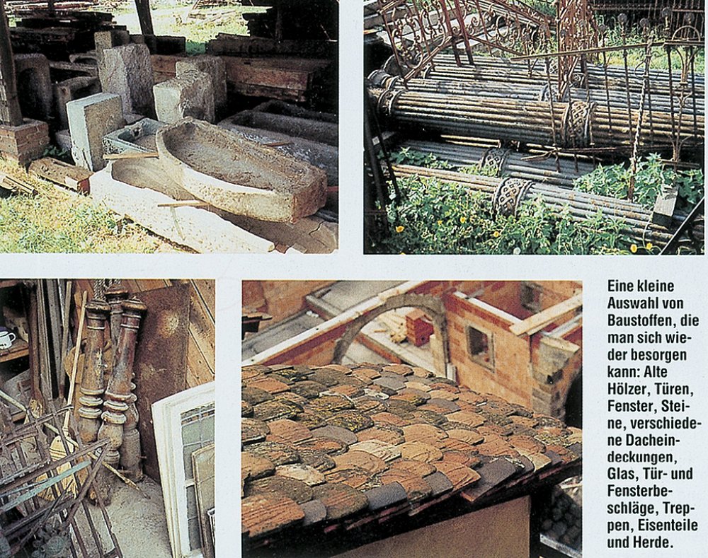 Neben dem ökologischen Bauen entwickelt sich seit Ende der 80er Jahre zunehmend ein Markt für alte Baustoffe, die bei Renovierung alter Häuser wieder eingesetzt werden können.
